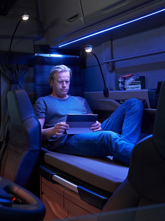 With its numerous comfort and convenience features and attractive interior lighting, MAN’s most spacious cab offers an unrivalled sense of home and well-being.